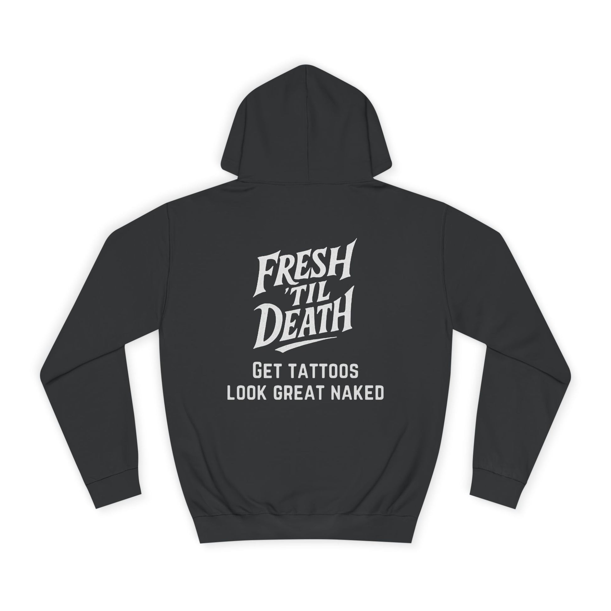 Every stitch nods to utility and longevity: a structured shape from side seams, a drawstring hood for coverage, and a roomy pocket for hands or small gear. The feel is medium-heavy and comforting; the finish is honest and unostentatious. Whether you’re an artist, an apprentice, or a collector of well-made pieces, this hoodie fits into the rhythm of tattoo life — lived, repaired, and proudly worn.